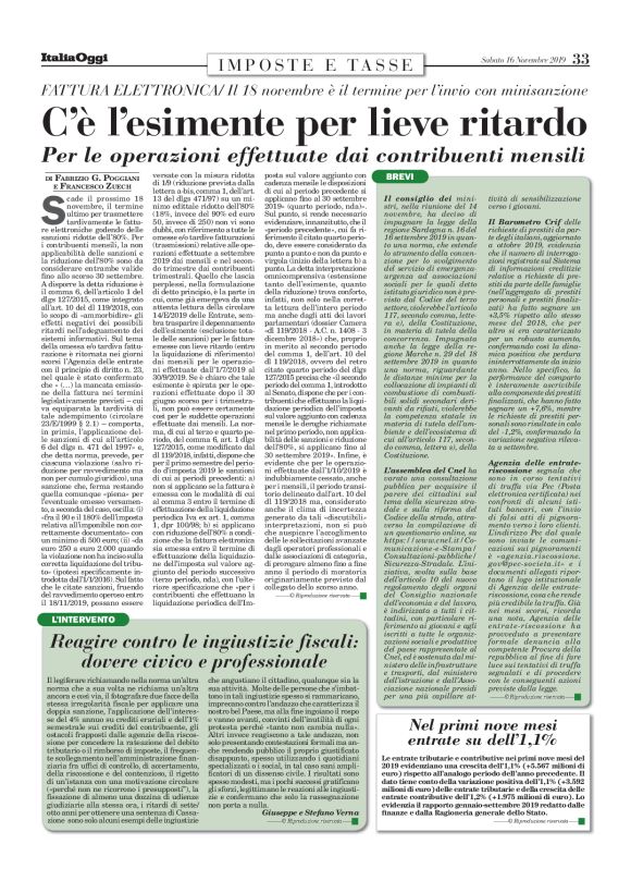 Segnaliamo l'intervento su Italia Oggi del 16/11/2019 di Giuseppe Verna e Stefano Verna: Reagire contro le ingiustizie fiscali: dovere civico e professionale.